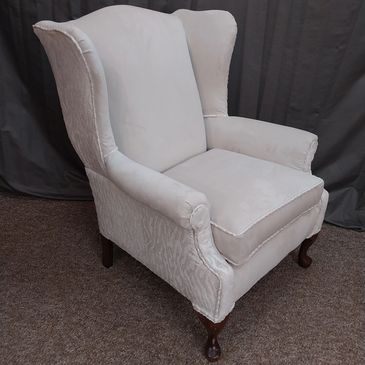 This cat chair was for a close family friend. They loved loved the material and we could not find anything like it so we did a full dismantle, kept the old material intact. New foam, spring work and wood work, reupholstered with the same material, fresh tacks and bam! I was trying to get our cat to sit on it in a natural
